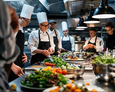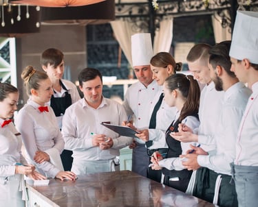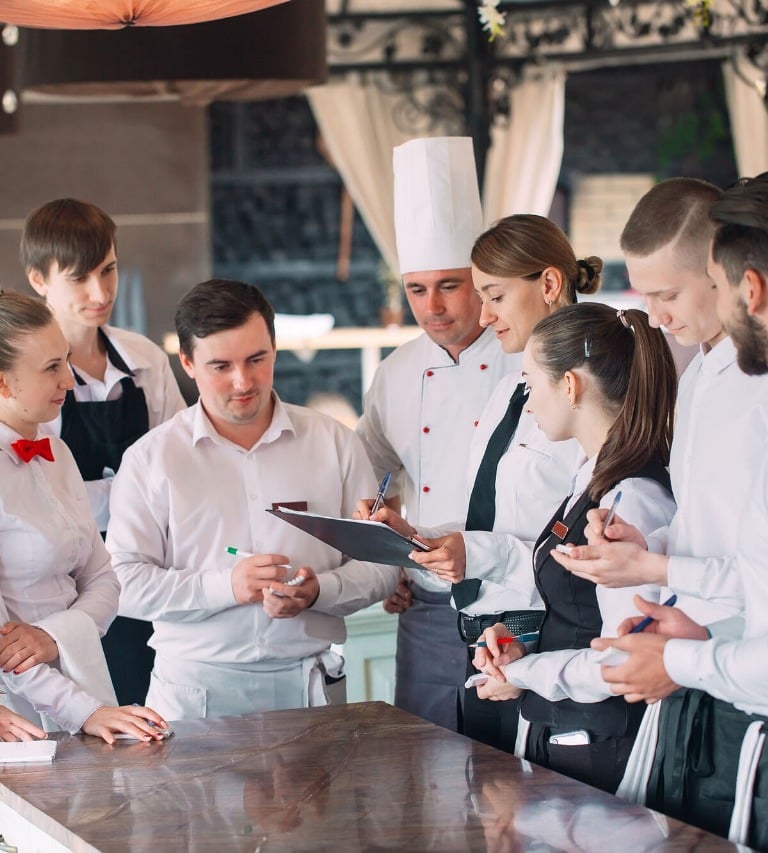 Contamos com uma equipe de profissionais qualificados para oferecer treinamentos completos em produção e operação do seu estabelecimento. Nossa equipe é composta por Chefs, Subchefs, Cozinheiros, Nutricionistas, Gestores de negócio, Maîtres e Hostess, garantindo excelência em cada etapa do serviço.